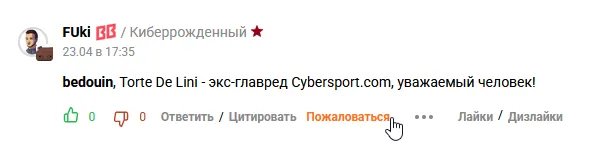 Мы продолжаем улучшать Cybersport.ru, чтобы читателям у нас было не только интересно, но и как можно более комфортно. Горячие баталии в комментариях давно стали визитной карточкой нашего сайта, но теперь мы сможем лучше контролировать их разрушительную силу благодаря долгожданной системе жалоб.